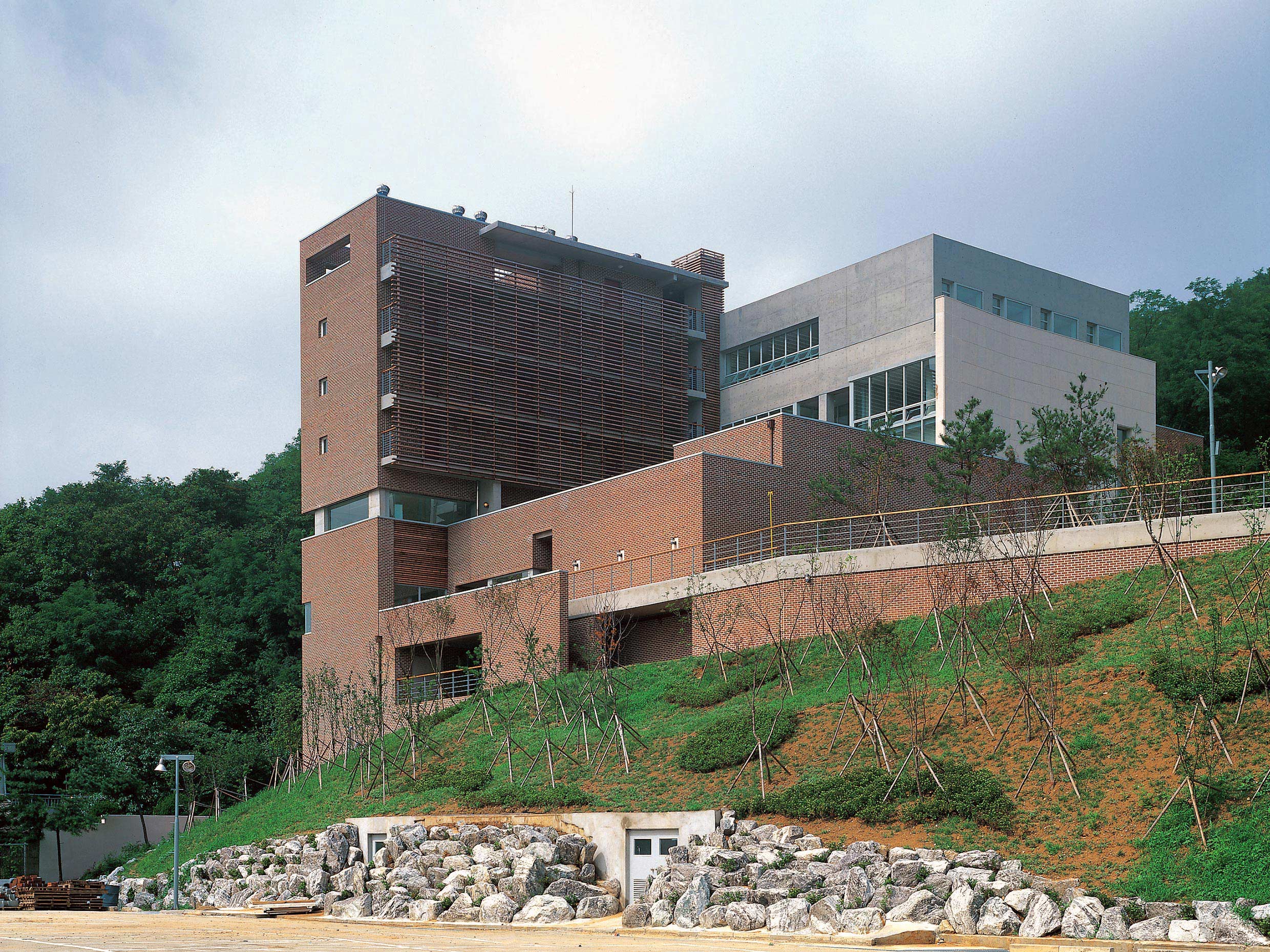 우석기념관은 건물의 개념을 학생들의 이벤트로부터 시작하여 랜드 스페이스에 중점을 두고 학생들의 커뮤니케이션의 공간이자 만남의 장소를 경사진 대지의 다양한 레벨위에 두었다. 서로 다른 프로그램(주거동, 교사동, 강의동)은 열린마당 위에서 상호 동선이 연결과 차단이 매순간 내,외부 공간과 존재하며, 이 열린마당은 이 건물의 주요 코아이면서 사교의 장인 동시에 다양한 행위를 받아등이는 장소가 될 것이다.