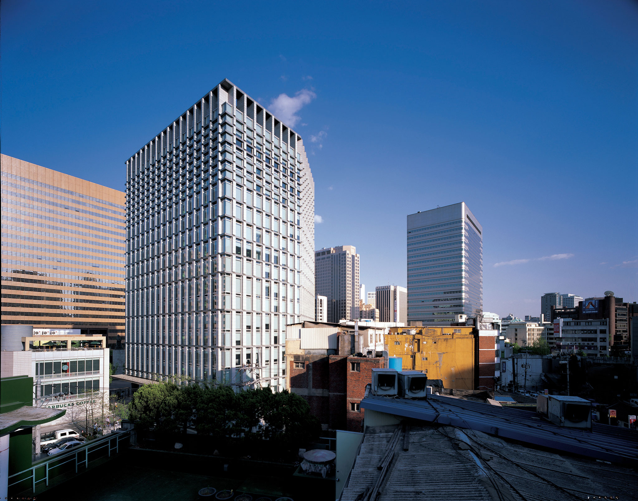 현대해상화재보험 광화문 사옥은 1976년 준공된 기존 사옥의 리노베이션 프로젝트로서, 기업 이미지를 쇄신하고 낙후된 사무환경을 개선하는 것을 주요 목표로 두었다. 기존 건물의 갈색톤의 색감과 대비되는 화강석과 유리의 사용은 현대적 감각을 구현한다. 또한 건물 외관을 둘러싼 수직 기둥의 비례와 리듬은 단순하면서도 강렬한 느낌을 발산한다. 본 건물은 경복궁과 그 앞의 광화문광장, 그리고 주변의 호텔과 여타 오피스들에 대비되는 의도된 평이함이 특징이며, 주변풍경 속으로의 은폐를 시도하는 정제된 마천루를 표현한다.