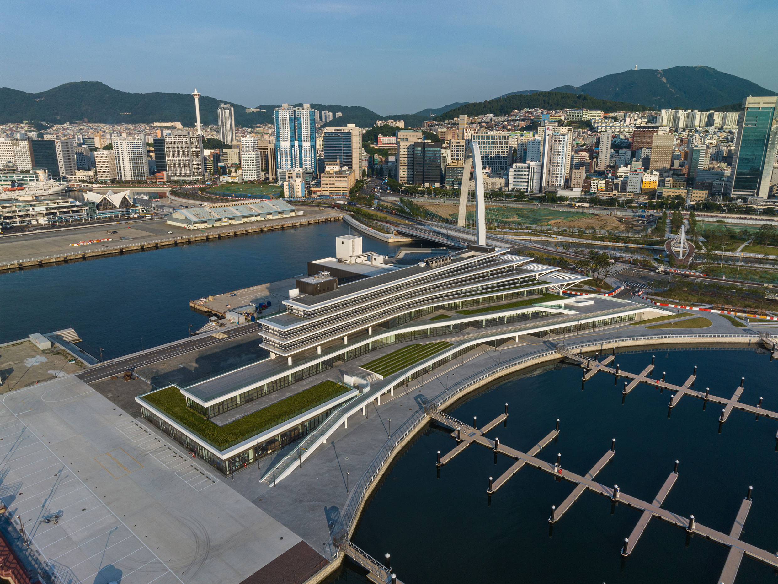 마리나의 외부 공간과 어우러진 테라스 형상의 매스는 자연 채광을 받아들이기 유리하며 이곳에서 해상계류시설과 해양문화지구 전체를 조망할 수 있다. 바다와 대지가 만나는 호안 공간도 가능한 한 길게 활용해 계류시설과의 연계성과 편의시설의 대면 비율을 높이며 이용객들의 접근을 원활하게 도왔다. 부산의 바다와 도시 풍광을 최적으로 조망할 수 있는 상층부에 숙박시설을 배치했고, 생활 체육 기반시설로서 어린이 생존 수영 교육장과 스킨 스쿠버 풀을 도입해 ‘부산시민 생활의 장’으로 기능할 공간을 추가로 확보했다. 부산항 국제여객터미널과 추후 건립될 부산 오페라 하우스 등 기존 건축을 존중하며, 북항이 지닌 컨텍스트를 조화롭게 받아들이는 풍경으로서 존재하며 부산의 새로운 랜드마크를 구현한다.
