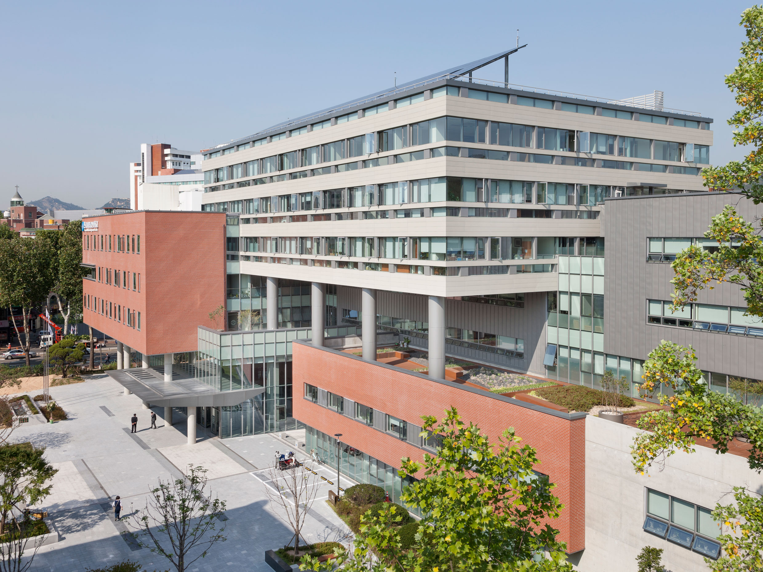 건물 매스는 주변과 유사한 볼륨으로 분절시켜 위압감을 줄이고 적벽돌로 마감하여 도시에 자연스럽게 어울릴 수 있도록 했다. 지역 주민들이 캠퍼스의 중앙 정원과 휴게 공간을 변함없이 왕래하며 이용할 수 있도록 저층부 상당 부분은 공공에 할애했다. 중앙 광장에 활엽수를 식재하고 벤치를 만들어 활용도를 높였으며, 대학로에 면한 부분은 필로티로 셋백시켜 비를 피하거나 통로로 이용하도록 했다. 대로변에 면하는 저층부는 커튼월, 대학로에 면하는 중층부는 적벽돌, 정면성을 갖는 상층부는 칼라시멘트 패널과 징크(zinc)를 사용했다.