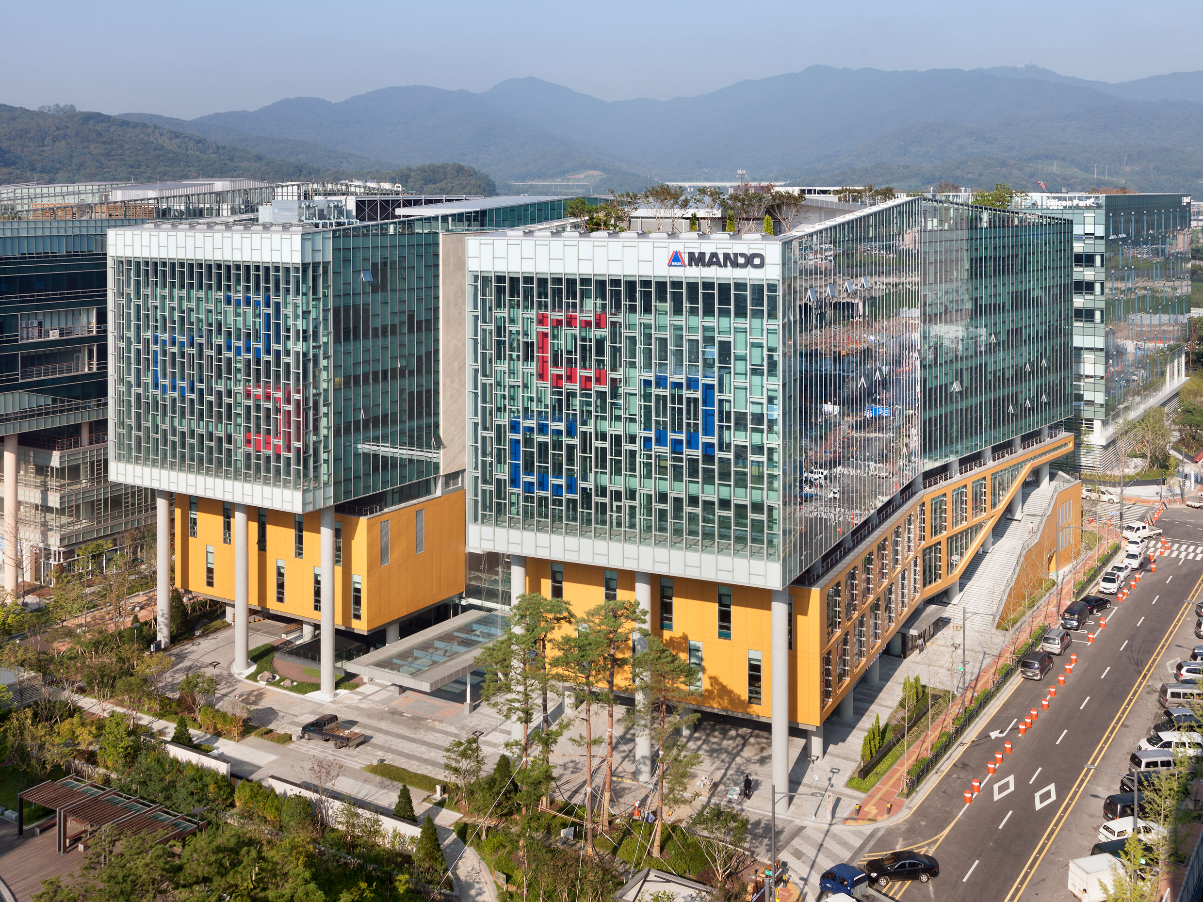 만도 글로벌 R&D 센터(만도 중앙연구소)는 2006년 PF계약을 통해 상당 부분 결정되어 있던 계획안에서 출발한 프로젝트였다. 정해진 조건에서 이용자의 구체적인 요구를 충족시키고자 모듈, 코어, 층고, 외피 등 건축물의 큰 골격이 되는 시스템의 기본부터 치밀한 검토를 수반하며 공간을 만들어 나갔다.