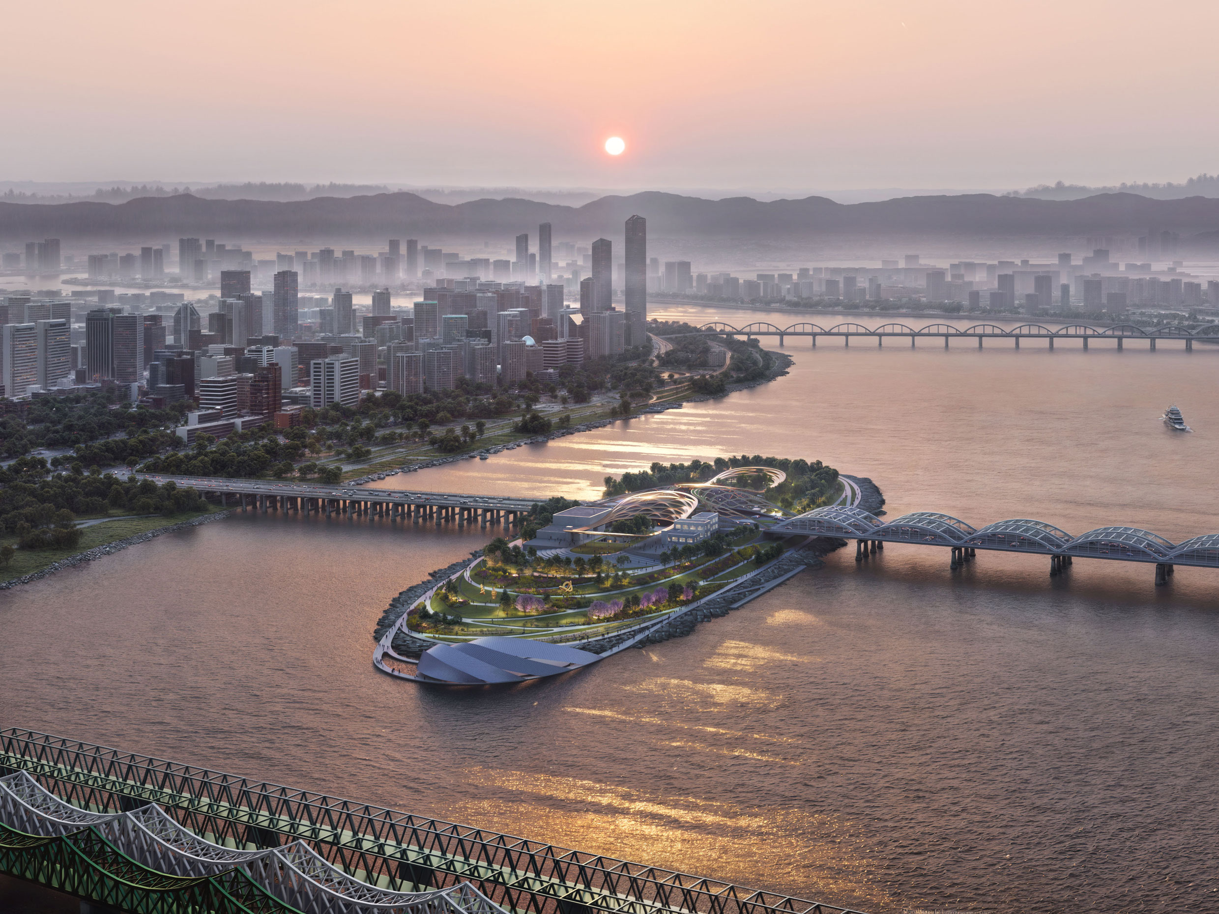 한강대교 한가운데 자리한 노들섬은 2005년 서울시에 매입된 이래 다양한 사업과 이용계획이 추진되어 왔던 장소다. 2005년 ‘예술섬’ 조성 계획이 처음 수립되었고, 2012년에는 도시 농업을 위한 텃밭으로 임시 활용되었으며, 2019년에는 음악 중심의 복합문화거점을 표방하는 ‘노들꿈섬’으로 재개장되기도 했다. 서울시는 2023년 「도시건축디자인혁신방안」 시범사업 대상지 중 하나로 노들섬을 선정하고 6가지 기본 구상을 충족할 국제설계 공모를 지명설계 방식으로 개최했다. 정림건축은 덴마크 기반 설계사무소인 BIG와 협업해 공모에 참여했다. 설계안의 목표는 노들섬의 기반 시설을 재구상해 이곳이 해안 너머 서울의 등대로써 거듭나도록 하는 데 있었다. 고속도로가 만든 균열, 협소한 프로그램, 간헐적인 홍수로 가로막히던 노들섬의 잠재력을 일깨우고자 했다.