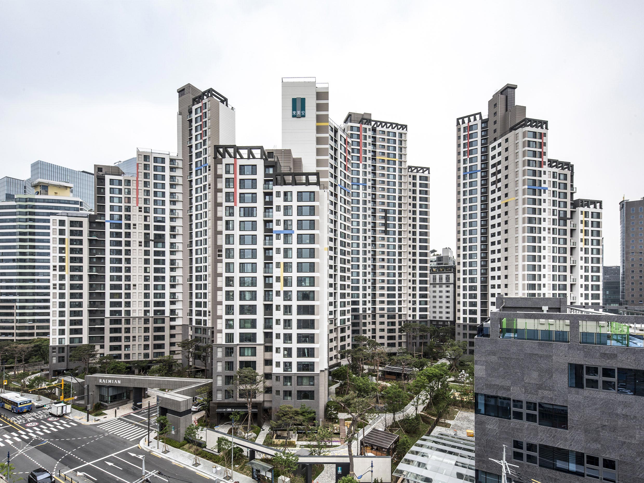 이러한 위치적 여건은 단지의 아이덴티티 부여를 요구하였으며, 삼성물산의 주변 재건축 단지에 대한 발빠른 개발 참여와 삼성전자 서초동 사옥과 함께 인식되며 강남의 삼성타운 일부를 형성하는 대표 주거지로서의 성격을 띠게 되었다. 대지 남서측에 위치한 주구중심 상가는 장방형의 대지에 배치된 격자형 주동배치를 깨고 들어와 어린이집과 연계된 광장의 형태를 완성하고 있으며, 사용의 편리를 위해 지하 또한 연결되어 있다. 총 593세대의 규모의 단지는 5개의 전동이 1층에 필로티를 가지고 있어 좁은 공간에서 32층을 구성한 단지의 조밀함 속에 내,외부 보행자의 시각적 개방성을 확보해 주고 있다.