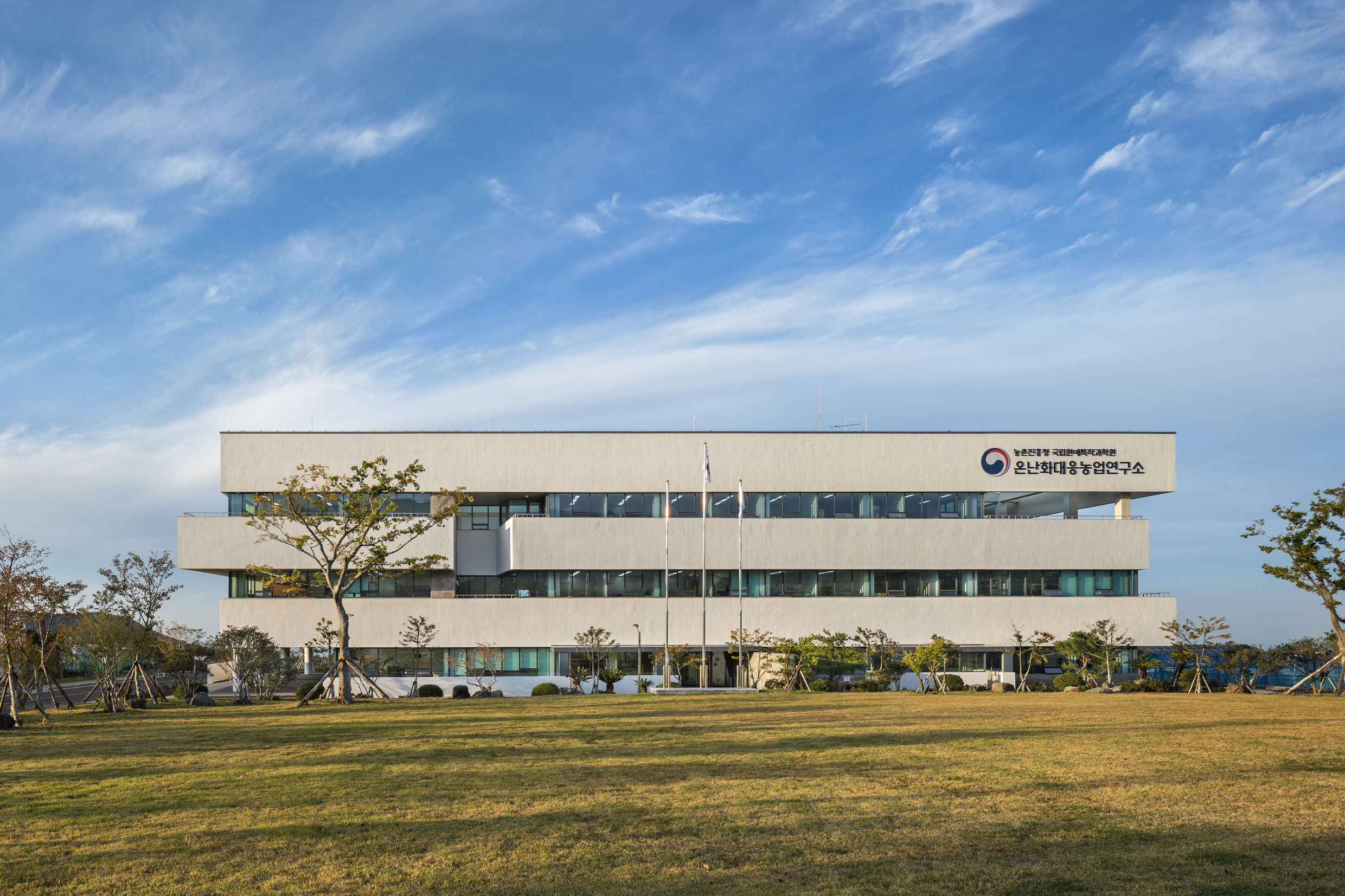 농촌진흥청에서 운영하는 온난화대응농업연구소는 지구 온난화에 대응할 농산물 품종개발을 연구하는 곳으로, 난지농업연구소가 그 전신이다. 제주도는 본디 한라산 산지부터 해안에 이르기까지 해발고도에 따른 온도 분포가 다양해 작물의 생육과 품질 평가가 유리하며, 최근 지구 온난화로 인해 제주 특산식물들이 남해안 난지권으로 이동하고 아열대 기후의 채소와 과수가 유입되는 현상을 겪으면서 기후 변화에 따른 농작물 연구의 최적지로 주목받았던 지역이다. 이번에 신축되는 연구소 신관은 드넓은 초지 한복판에 들어서고 있었기에 설계 시에도 대지 콘텍스트보다는 건물 본연의 기능에 집중해 ‘기후 변화에 대응하는 사람들의 노력’이 곧 연구소의 핵심으로 드러나도록 했다. 공공 기관으로서 안정성과 상징성을 지니면서 조형성과 독창성을 지닌 쾌적한 환경을 제공하고자 했다. 당초 계획 범위는 종합연구동에 한했으나 향후 온난화대응농업연구소 단지계획을 고려해 마스터플랜과 함께 진행했으며, 지원시설 중 농기계창고동을 추가로 계획하게 되었다.