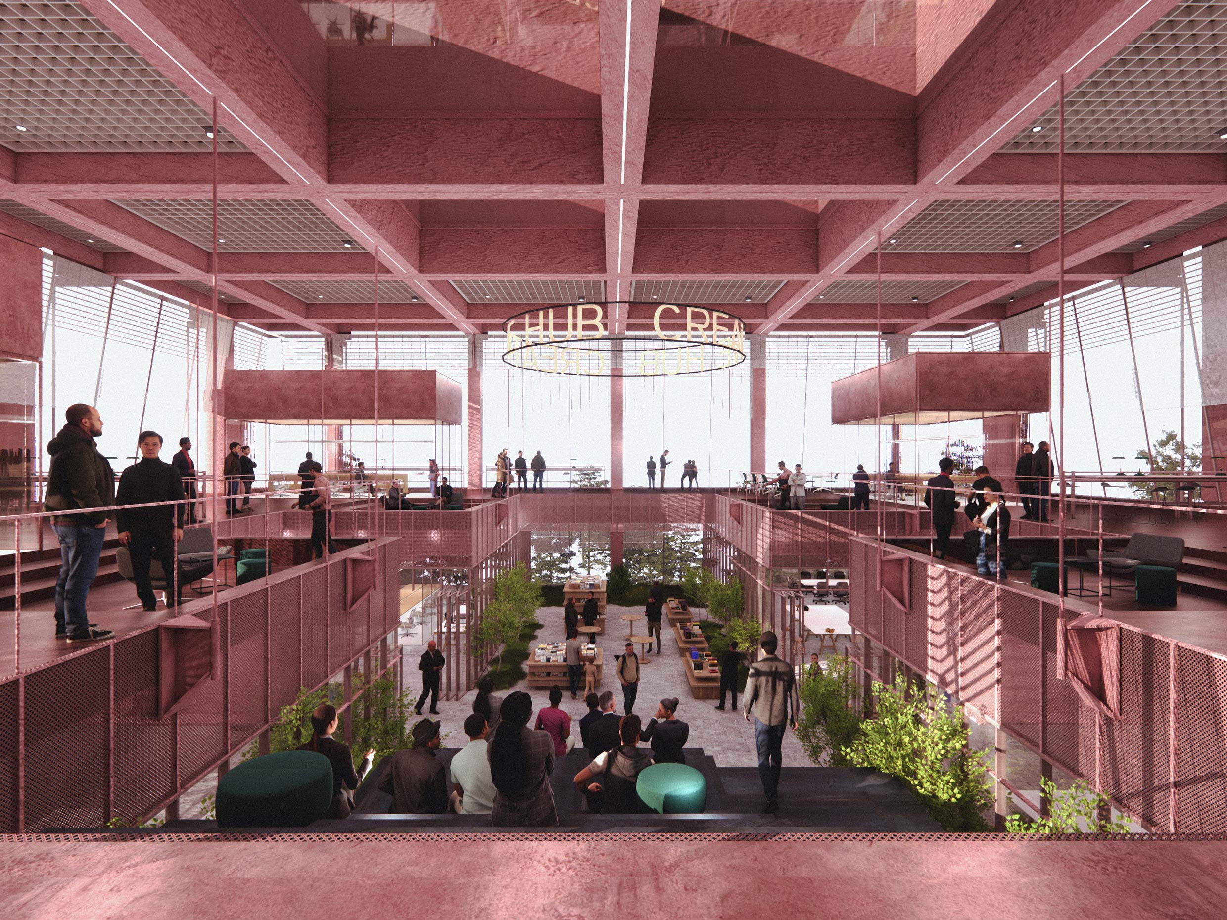 구로 지역의 산업 아카이브를 함축한 조형적 매스는 과거 공업단지의 구조적 어휘를 현대적으로 해석하며, 노출 콘크리트의 물성과 입면의 금속 구조가 지닌 질감으로 산업의 흔적과 시간의 층위를 기록하는 시공간적 전이를 감각적으로 드러낸다. 각 층의 공유 공간은 오픈 랩(Open Lab) 방식으로 구성되어 기업 간 상호 작용을 유도하는 네트워킹 공간으로도 기능하며 첨단 제조 산업으로 빠르게 변화한 산업 구조와 미래의 불확실성에 대응한다. 패시브 디자인, 자연 채광, 환기 시스템 등 친환경 요소 또한 지속 가능한 창업 생태계의 기반을 마련하기 위한 구조적 혁신이다. 이상의 설계안을 통해 도시 재생과 기술 기반 창업이 융합하는 미래형 창업 클러스터로서, 지속 가능한 도시 발전의 새로운 유형(prototype)을 제시하고자 했다.