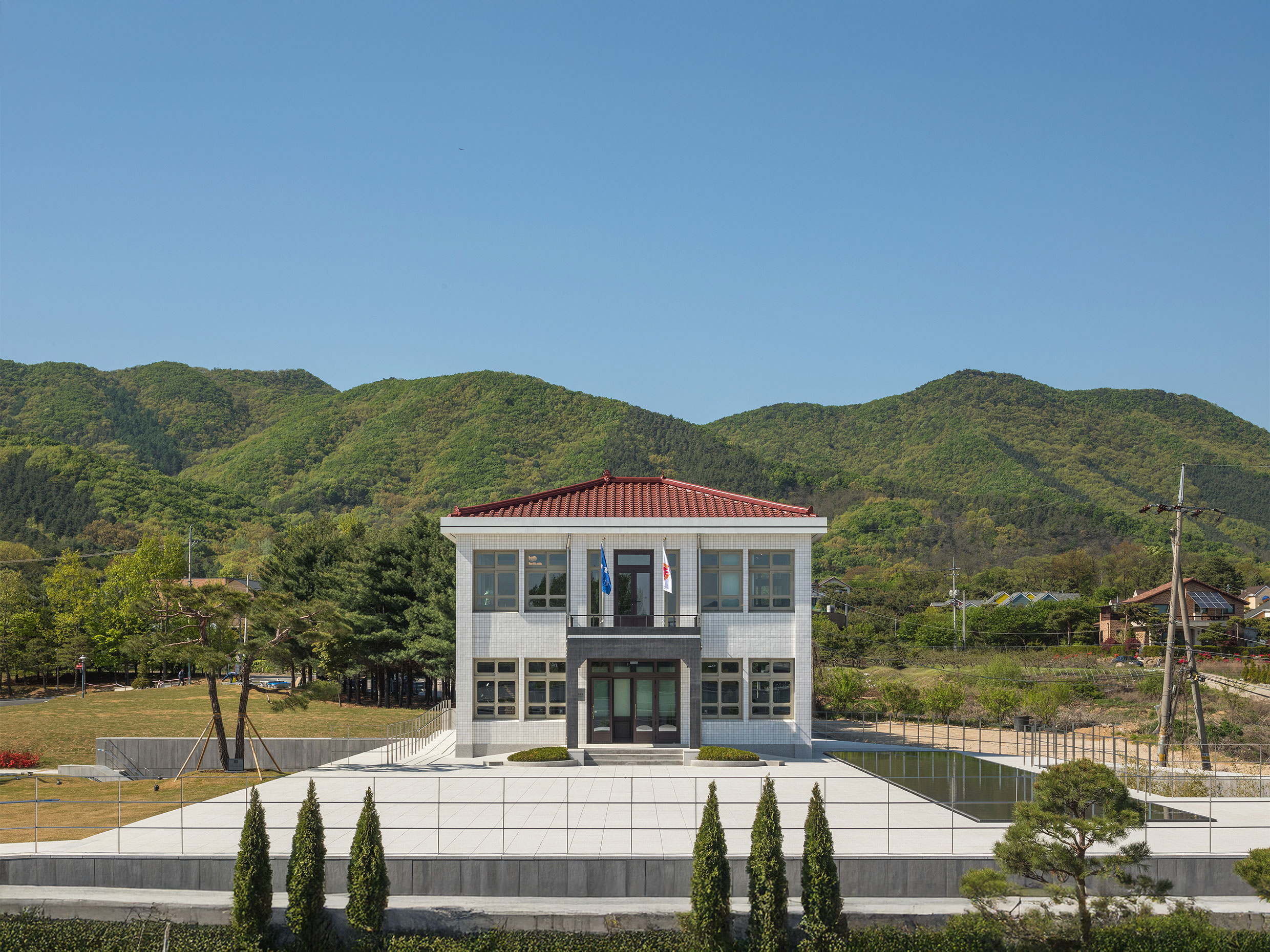 정림건축은 SK아카데미 부지 내에서 기념관이 세워질 구체적인 장소를 선정하는 작업부터 시작했다. 부지 선정 이후에는 ‘복원’에 중점을 두고 설계를 진행했다. 현행법과 오늘날의 환경 조건에 맞추어 외장의 비례나 재료를 최대한 본래의 모습대로 구현하고자 하였다. 또한, 본관과 관리동이 기존 대지에서 오랜 역사를 축적했기에, 새로운 땅에 기념관을 세우는 일은 단순한 이전 및 복원 그 이상의 가치를 필요로 했다. 수목을 이식할 때 나무 뿌리의 흙까지 한데 옮기듯, 두 건물이 대지의 역사와 함께한 공간적 콘텍스트를 새로운 땅에서 회복하고자 했다. 60여 년간 SK의 시간과 일상을 담았던 주 진입도로는 ‘거울 못’으로 추상화되고, 그 옆에 본관동이 위치한다. 관리동은 추모관으로 재탄생한다. 포디움의 선큰에 배치되어 추가로 확보한 지하 전시공간과 함께 본관동의 전시 동선을 이어받는다.