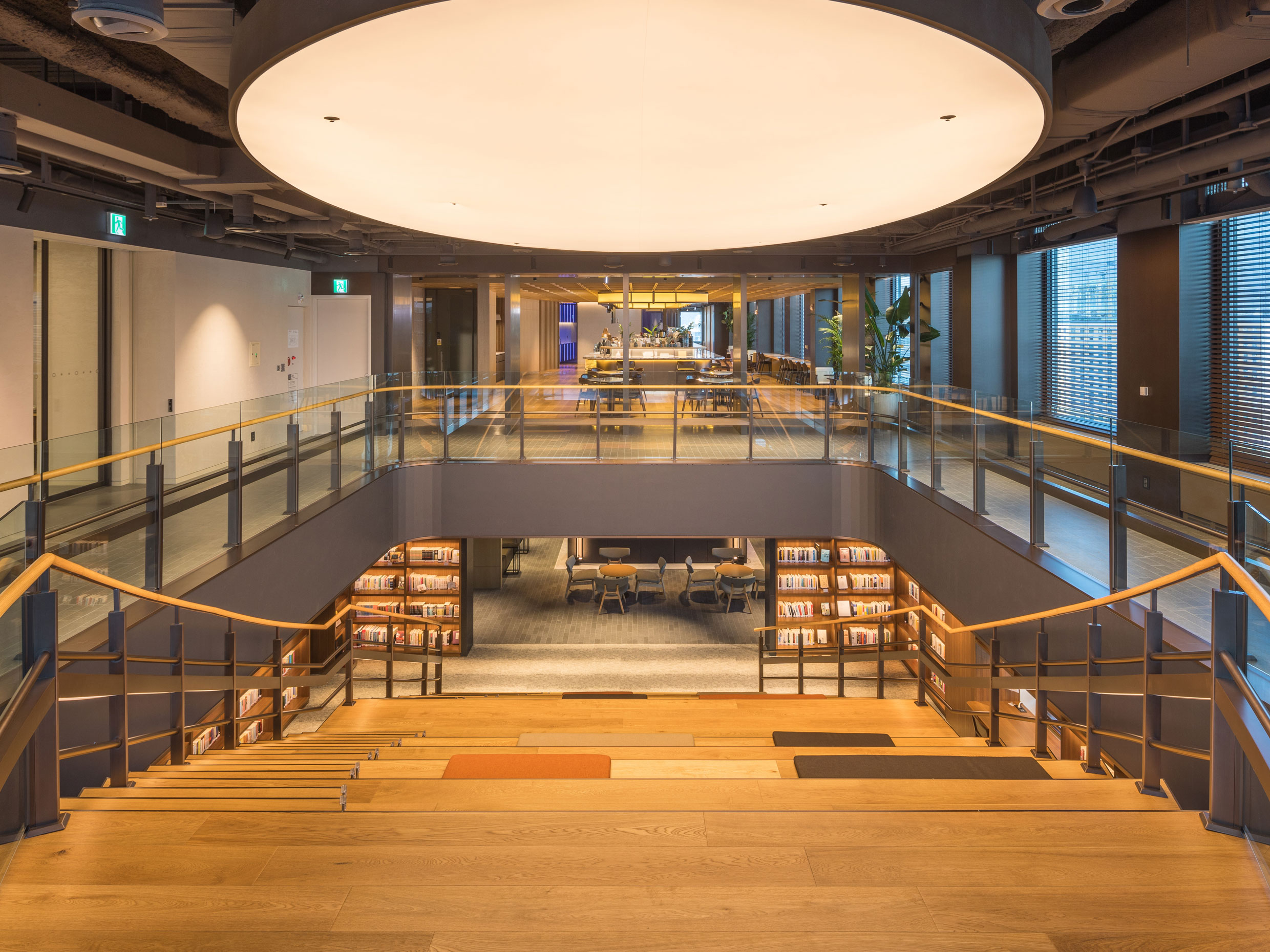 업무 기준층은 크게 ‘집중업무영역(Focus Zone)’과 ‘교류업무영역(Collaboration Zone)’으로 나뉜다. 집중업무영역에서는 회의처럼 커뮤니케이션이 필요한 업무, 개인 독립 업무 등 각 특성에 맞는 업무 공간을 다양하게 제공하며, 교류업무영역은 집중업무영역으로 전이를 돕는 공간이자 팀간·부서간·회사간 소통과 휴게가 가능한 복합 공간을 제공한다. 관계사 및 협력사를 맞이하고 업무 도중 환기할 수 있는 ‘공유영역’은 로비부터 옥상층에 이르기까지 서린빌딩 전체에 고루 배치되어 있다. 이를 가장 특징적으로 드러내는 곳은 20-21층에 배치한 계단식 라운지로, 모든 임직원이 모여 밀접하고도 편안하게 대화할 수 있는 공간을 마련했다.