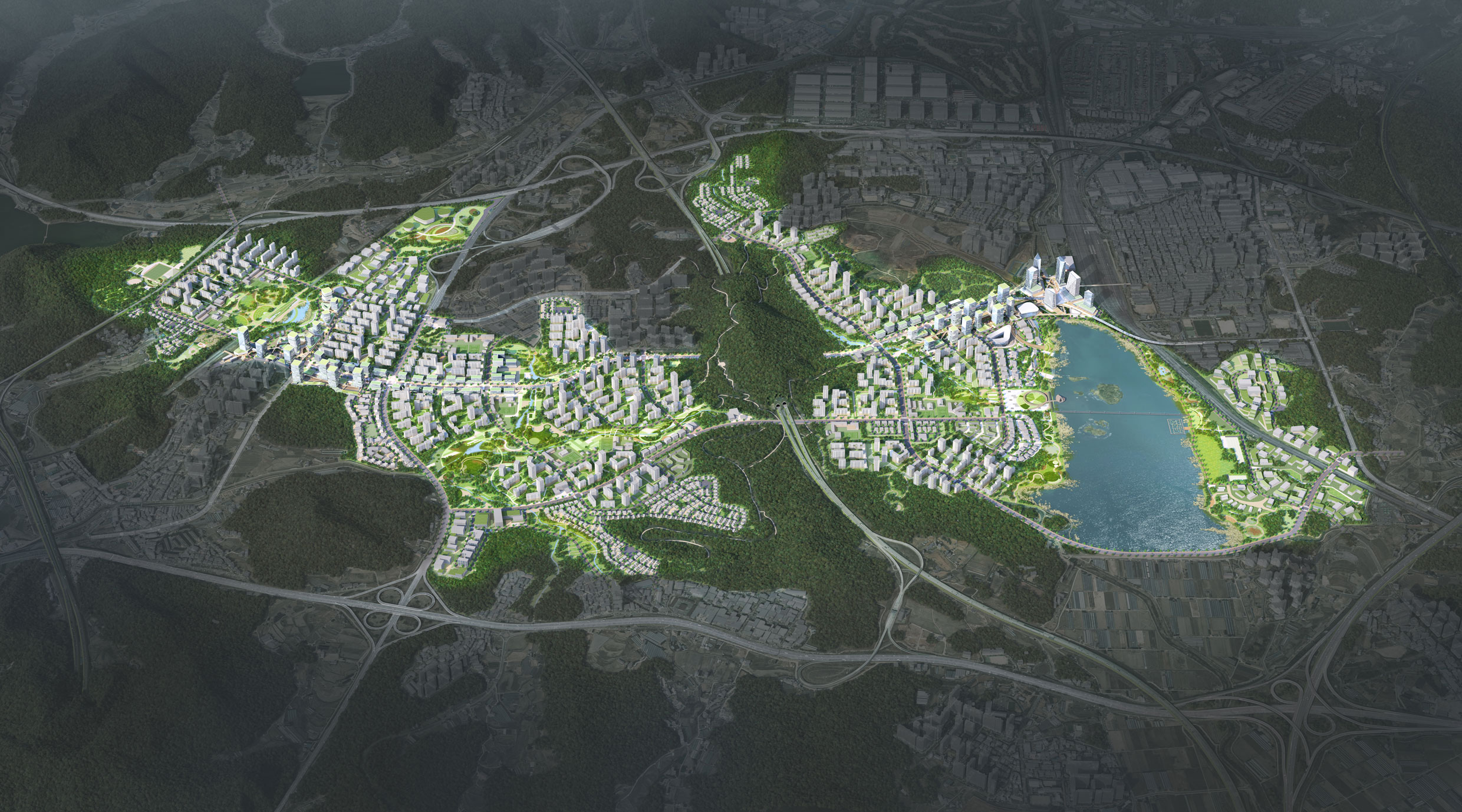 공모안에서는 크게 다음과 같은 주안점에 따라 공공주택지구의 도시공간구조를 조직하고 있다. 먼저 의왕, 군포, 안산의 도시적 특성을 상호 연계 개발하는 거점도시로서 3기 신도시 공공주택지구의 성격을 정립하고자 했다. 또한 수원광명고속도로, 영동고속도로, 서해안고속도로 및 반월역과 의왕역을 연결하는 광역교통망을 구축해 접근성과 이용성을 높이는 한편, 그간 개발제한구역으로서 오랫동안 자연 생태계가 보존되어왔던 점을 고려해 구봉산을 중심으로 한 녹지 및 공원 네트워크를 조성하고 왕송호수와 연계한 친수공간을 확보해 수변 생태환경도 보전하는 계획을 수립한다. 도시 기능 면에서는 반월역과 의왕역 등의 역세권 중심의 복합개발을 추진하며 각 도시 자원을 활용한 특화지역을 도입해 토지 활용도를 극대화한다. 이상을 토대로 자연과 사람, 생활과 환경이 어우러지는 입체적 도시공간을 창출하고자 한다.